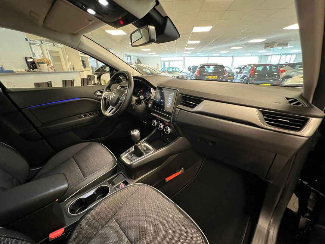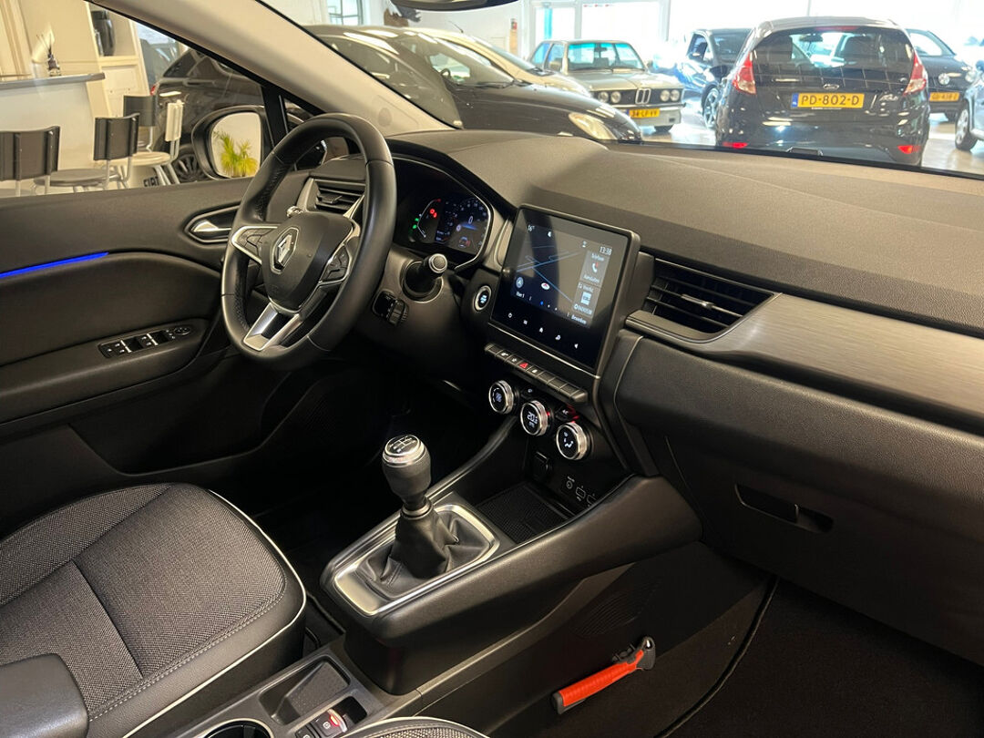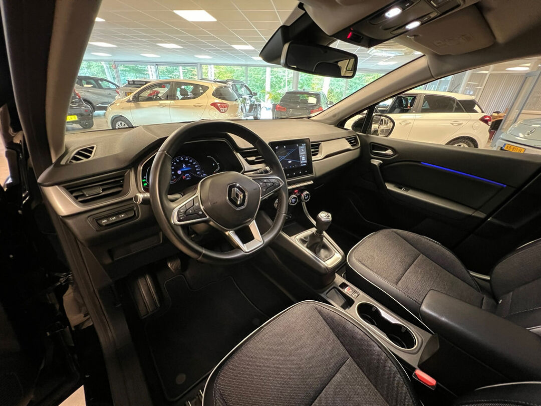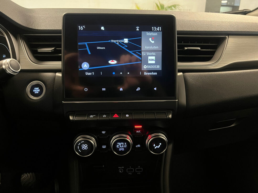 Zeer luxe uitgevoerde Renault Captur met o.a. 18" licht metalen velgen, Half lederen bekleding, achteruitrijcamera, Navigatie, Cruise controle en Parkeersensoren voor.