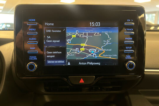 Zeer luxe uitgevoerde Toyota Yaris Hybride met o.a. Navigatie, achteruitrij camera, Climate controle, Cruise controle en licht metalen velgen.